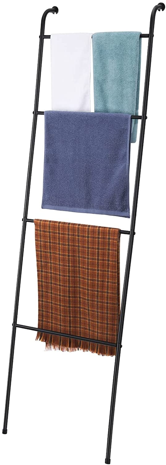 Wall Leaning Blanket Ladder Decorative Metal Towel Drying Quilt Holder Rack for Living Room Bathroom Outdoor Pool – Black