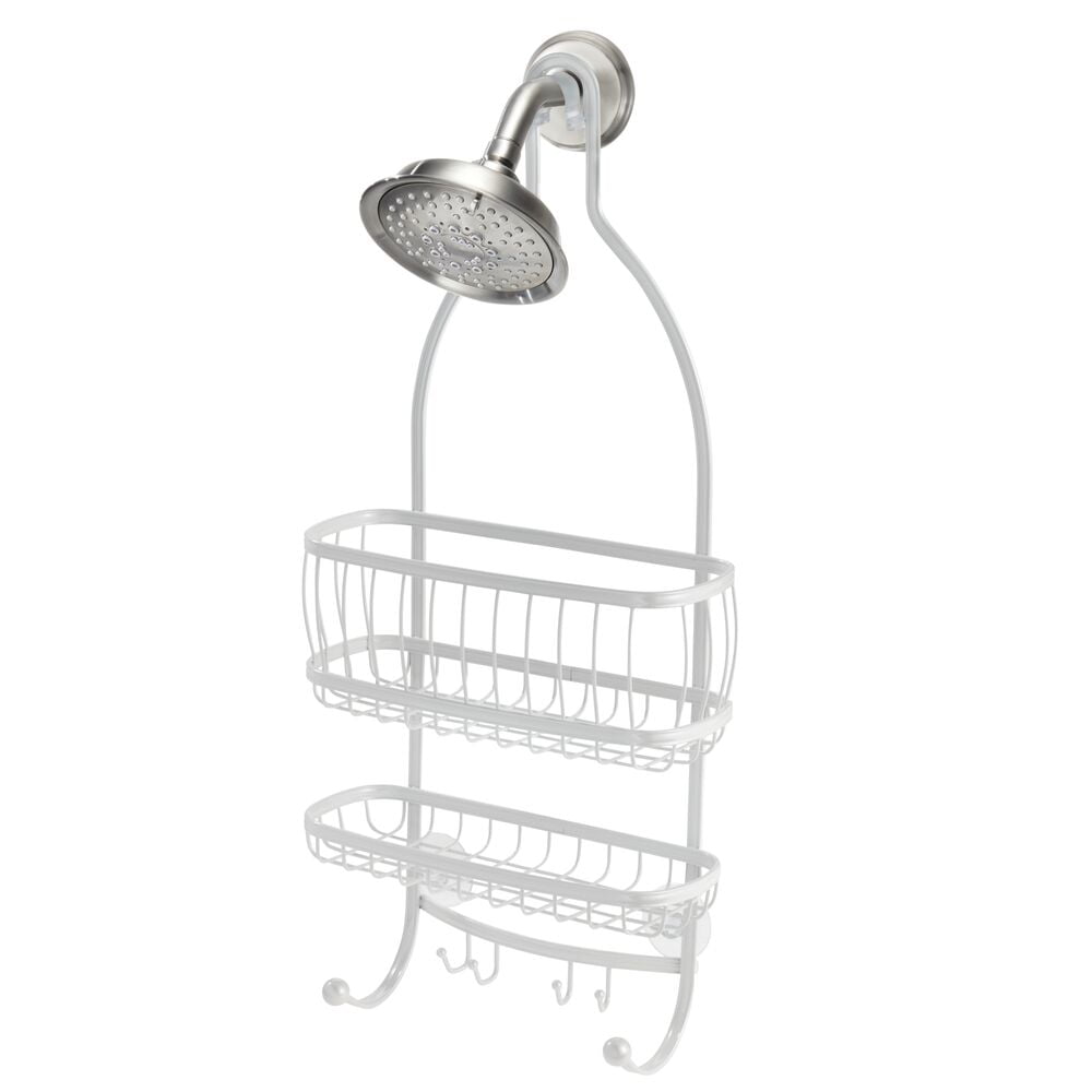 iDesign Metal Extra-Wide Hanging Shower Caddy, The York Collection, 10″ x 4″ x 22″, Pearl White