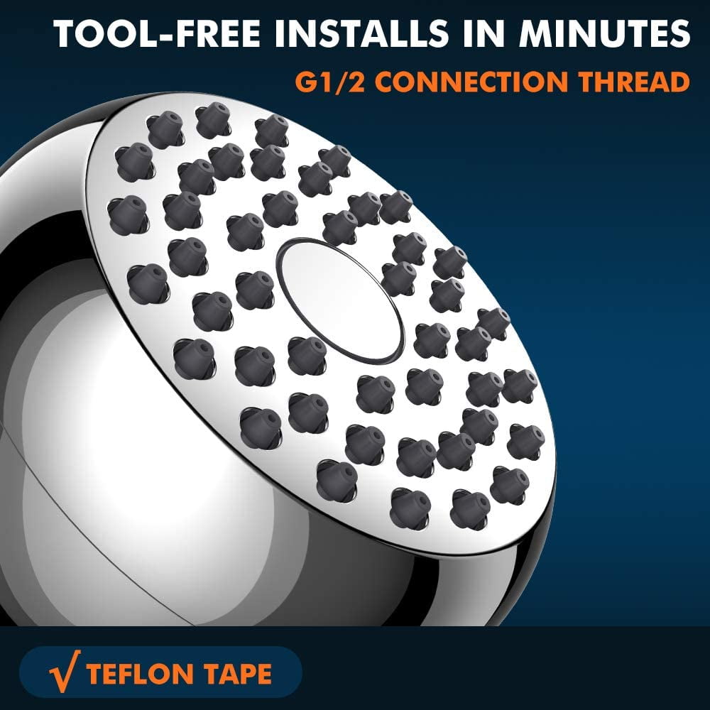 3-inch chrome finish surface with 45 jets ideal for low water pressure. G1/2” connection thread and Teflon tape – easy to connect to shower arm in minutes. Premium ABS structure and brass ball connection makes it lightweight and durable. Swivel ball joint – Get your desire angle of water spray for maximum comfort. Full body chrome finish – shiny look and streamlined shape makes your bathroom more beautiful. Excellent shower experience 3-inch chrome finish surface with 45 silicon jets provide powerful pressure and adequate flow to get pleasant shower even at low water pressure and flow circumstances. Install in minutes: Unscrew the old one and hand-tight the AQwzh shower head on your shower arm. Do not need to call the plumber. Purchase with confidence: We stand behind our shower head, we will try everything to make sure you can have nice shower. Use with pleasure and confidence. Durable brass ball connection: The G1/2” brass connection is designed to prevents cracking and leaking. Brass swivel ball joint helps you adjust the direction of the water spray for pleasant showering. Customer Service: We stand by our shower heads with our outstanding customer service, if you ever have a problem, just contact us.