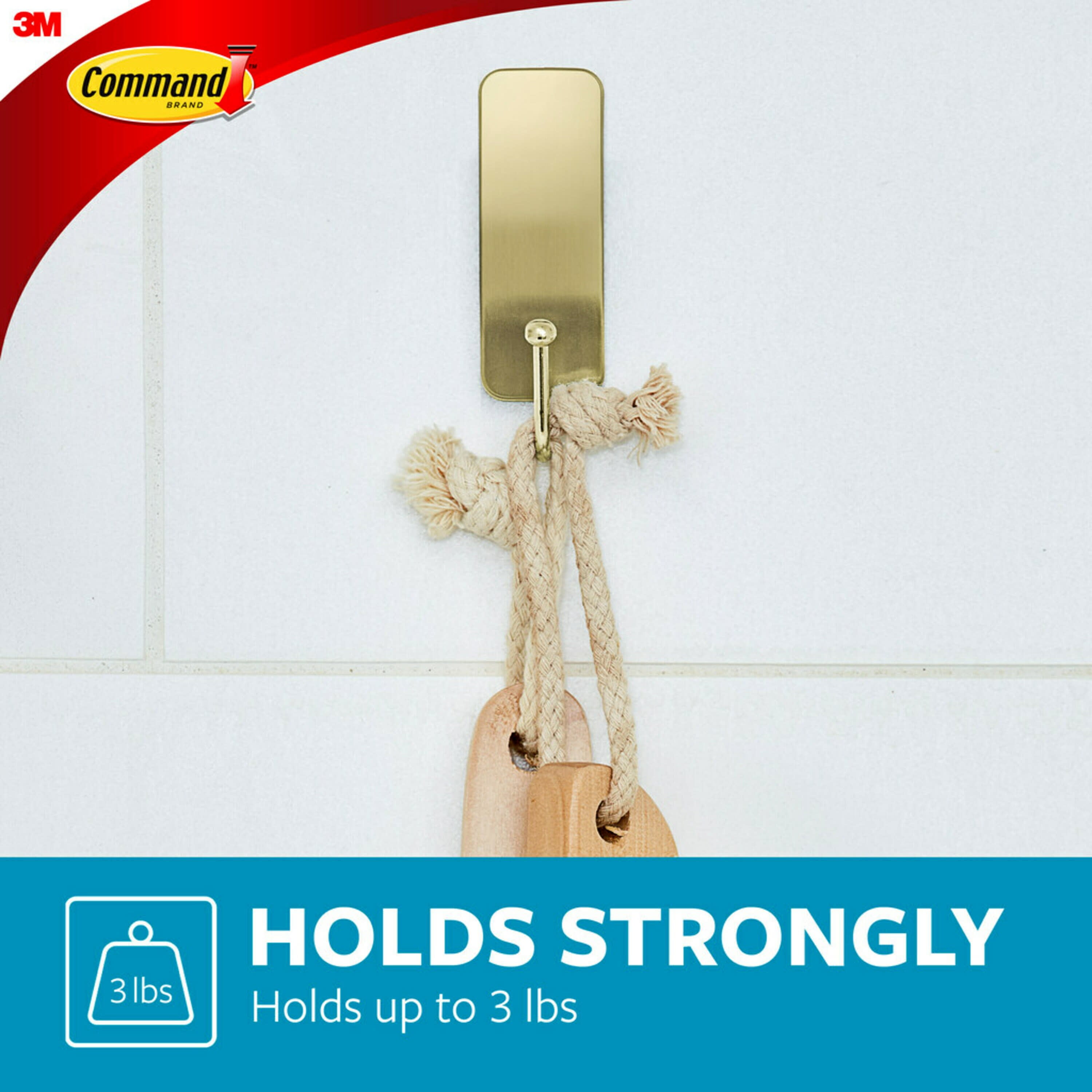 - INCLUDES – 1 Satin Brass Hook, 2 Water-Resistant Strips/Pack