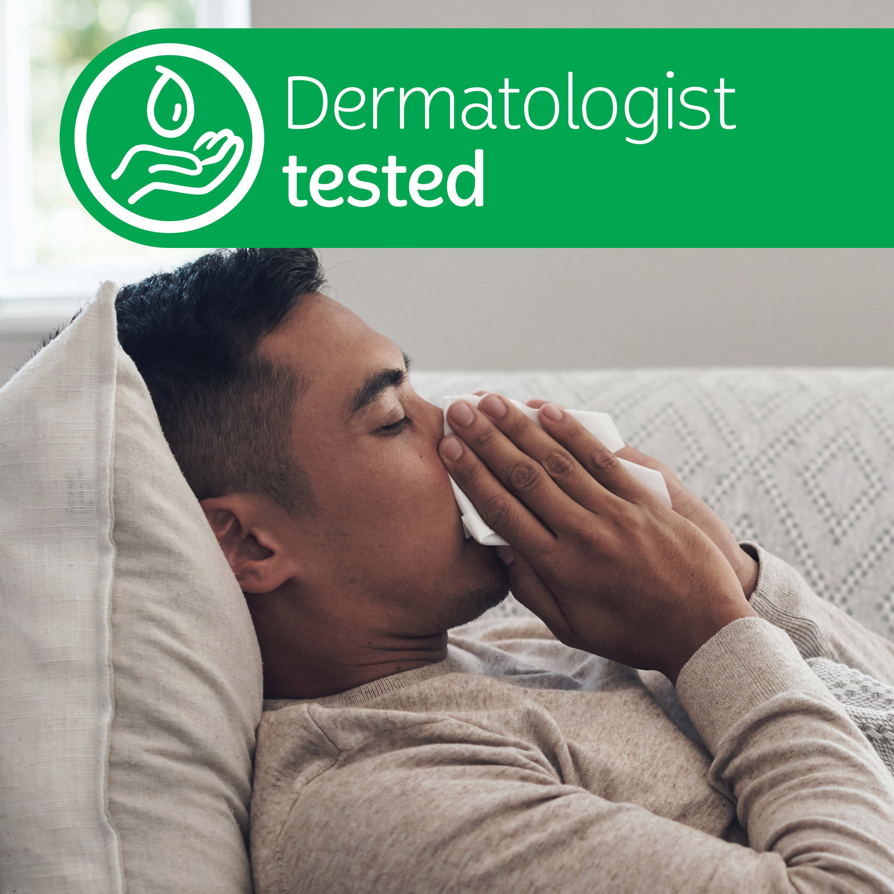 • Our dermatologist-tested, dye-free and fragrance-free lotion tissue features 3-in-1 skin-loving benefits that help protect, soothe and nourish skin.