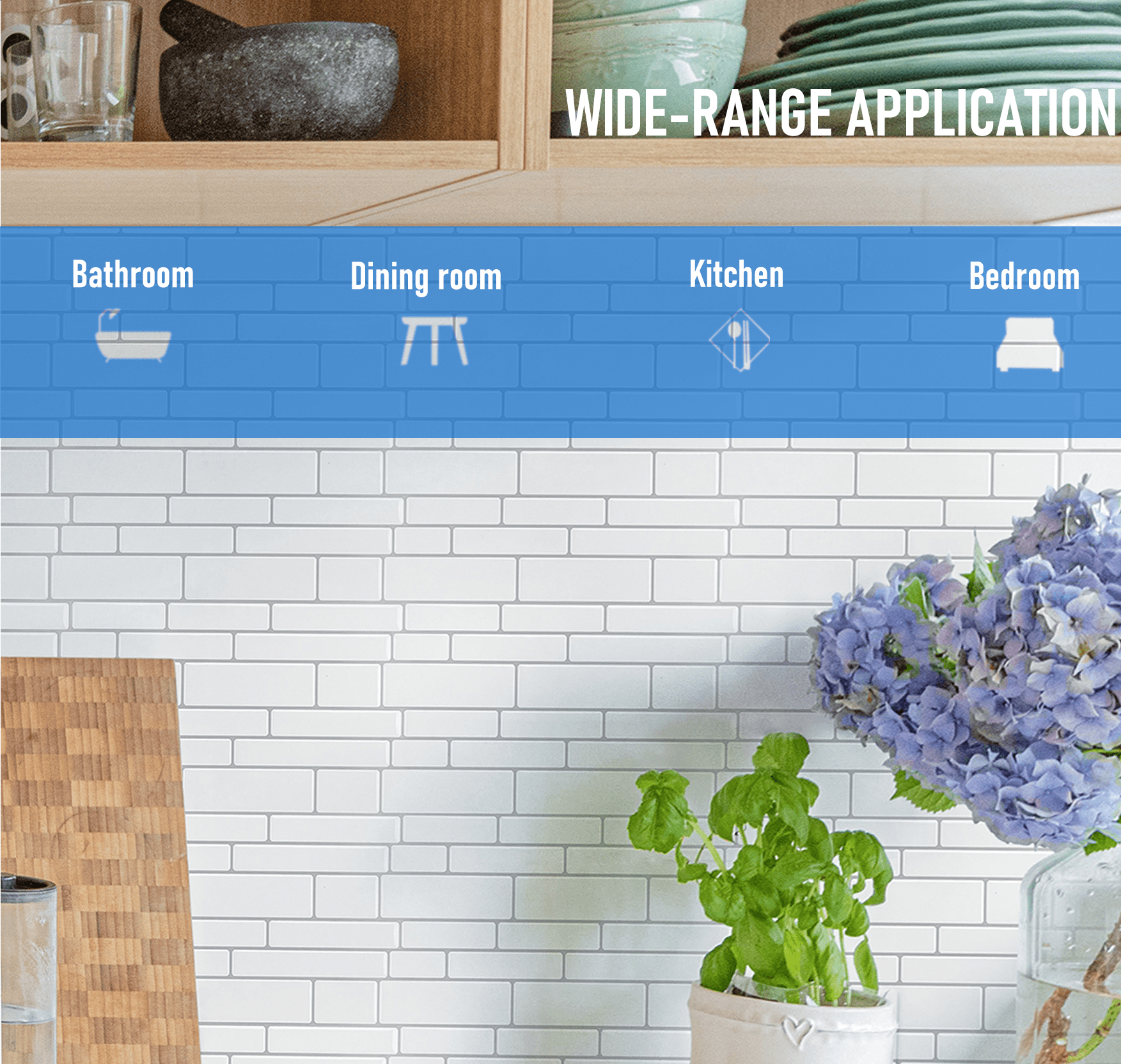 • Recommended Use: Kitchen Island walls, bathroom backsplashes, bedroom walls, laundry rooms etc.