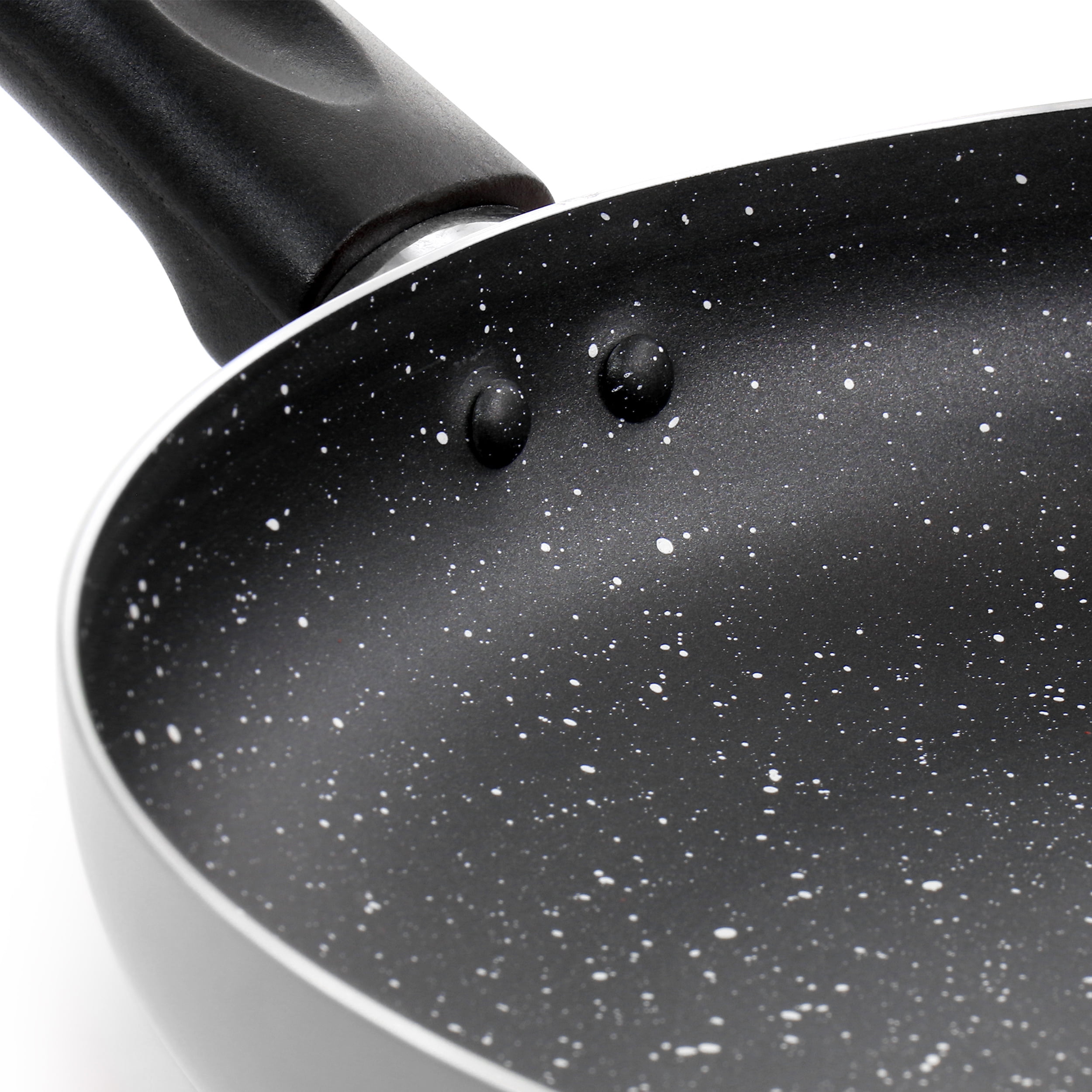 Cook to your heart’s content with the Oster Luneta 8 Inch Aluminum Nonstick Frying Pan. This chef’s pan features a vibrant exterior with a tasteful speckled nonstick cooking surface. The bakelite handles remain cool to the touch through out the entire cooking process. For long lasting care and handling its recommended to hand wash the skillet. Fry noodles, concoct a perfect egg breakfast, or saute chicken fajitas for everyone at home.
