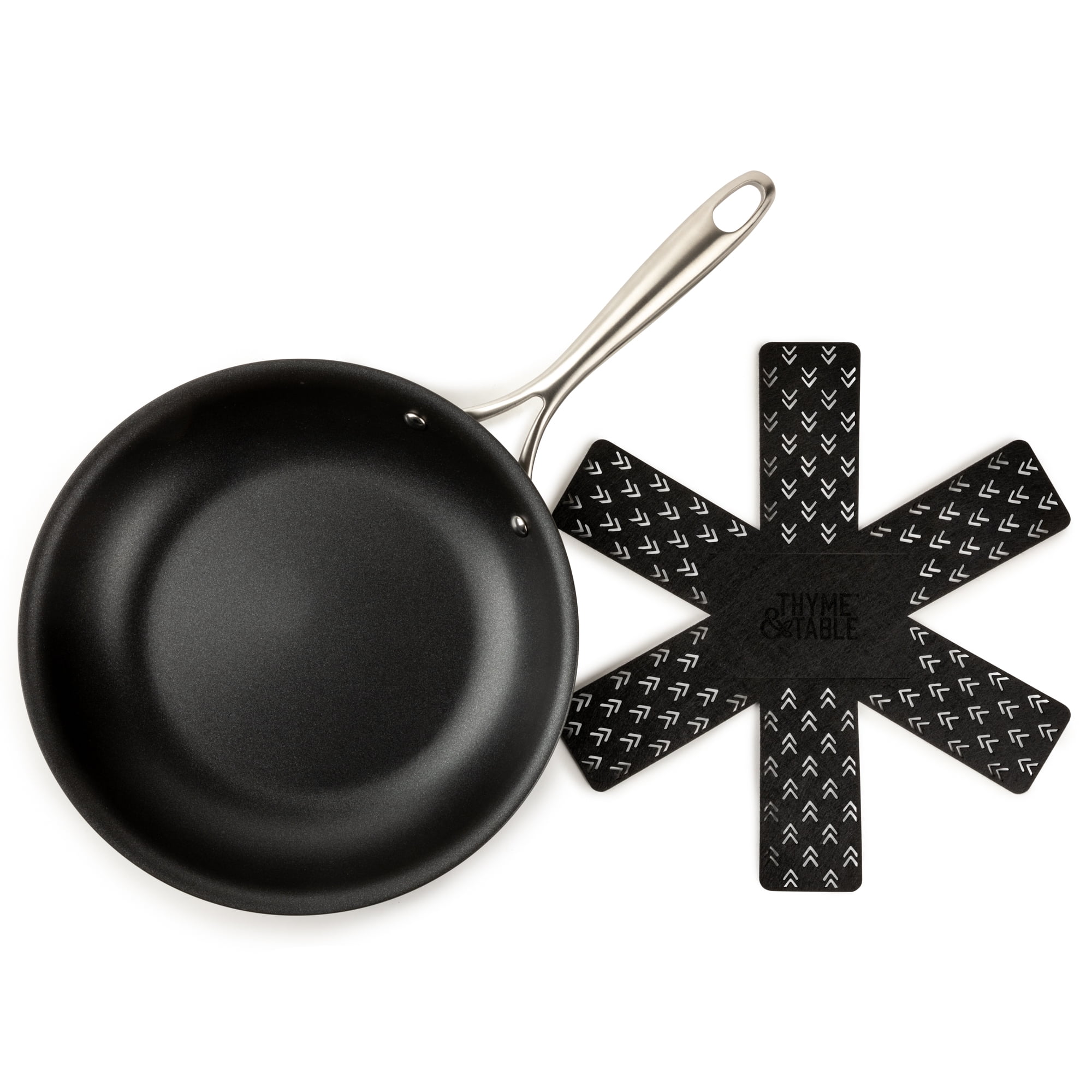 Thyme & Table Nonstick Hard Anodized 8" Fry Pan is apart of Thyme & Table’s Hard Anodize Collection. The Eclipse triple-layer heavy-duty nonstick coating promises quick food release while the hard anodized material delivers rapid and even heating with no hot spots. A hallmark of the Hard Anodized Collection, this fry pan is oven safe up to 400ºF (204ºC), and is outfitted with an ergonomic stainless-steel riveted handle for maximum stability.