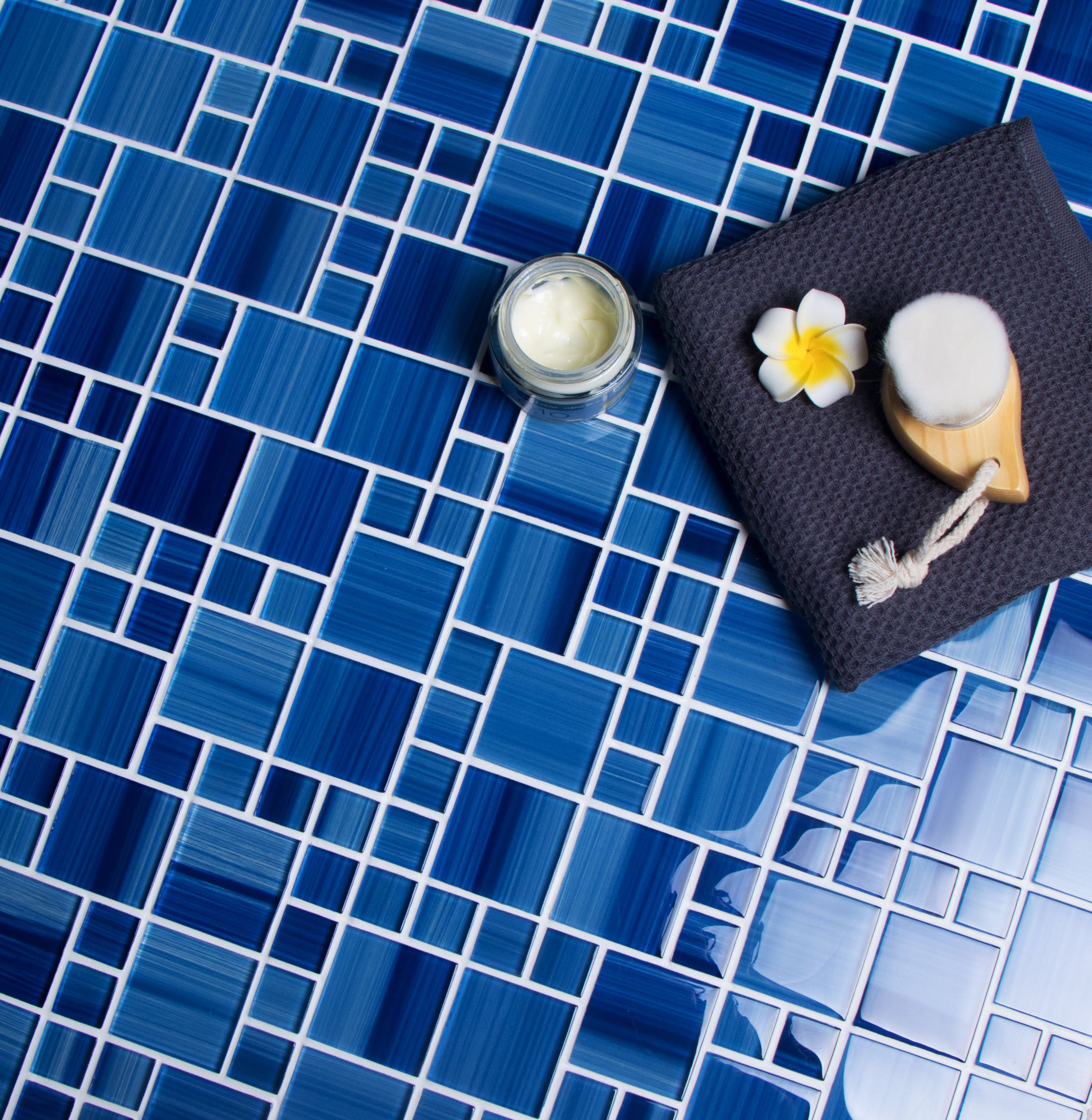 Add a little sparkle to your home with tiles from WS Tiles. We produce only the most beautiful and elegant tiles, so that no matter the project, we will help make your home look clean, modern and fresh for years to come. These Swimming Pool Series Glossy Versailles Glass Mosaic Tiles by WS Tiles are the perfect fit for your home or business. They are made with Glossy Grade A Float Glass. Each sheet of tile is 12" x 12", and the individual pieces vary in size and are 8mm thick. There are 5 sheets of tile per case, which covers 5 square feet and each case weighs 20lbs. The tiles must be installed using thin set and grout, and we recommend an un-sanded grout so that the surface of the tile is not scratched.